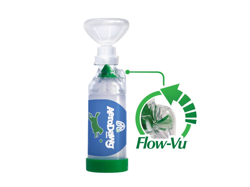 Inhalační komora AeroDawg® byla navržena pro snadné a přesné použití společně s běžnými MDI aerosolovými nástavci. Průhledné tělo a ukazatel Flow-Vu® pomáhají sledovat správné použití – bez odhadování a s přehledem o každém kroku.